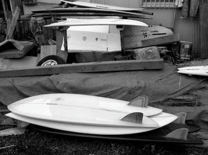 ショップのオープンは2001年。それ以来、ロングボードをベースに、フィッシュ、ボンザー、シングルフィン、ニーボード、パイポとさまざまな種類のサーフボードを作り、試してきました。