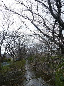 この川沿いが桜でいっぱいになるのはもう少しだけ先のようです。でも桜のつぼみはうっすらと桜色にふくらみ始めていました。