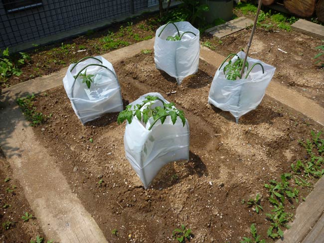 野菜も植えつけました。トマト、ナス、甘長とうがらしを植えましたが、もう少しスペースがあるので何か植えましょう。