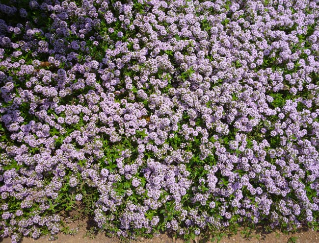 レモンとライムの足元にはタイムが花盛り。ハチがブンブン、蜜を集めにきています。