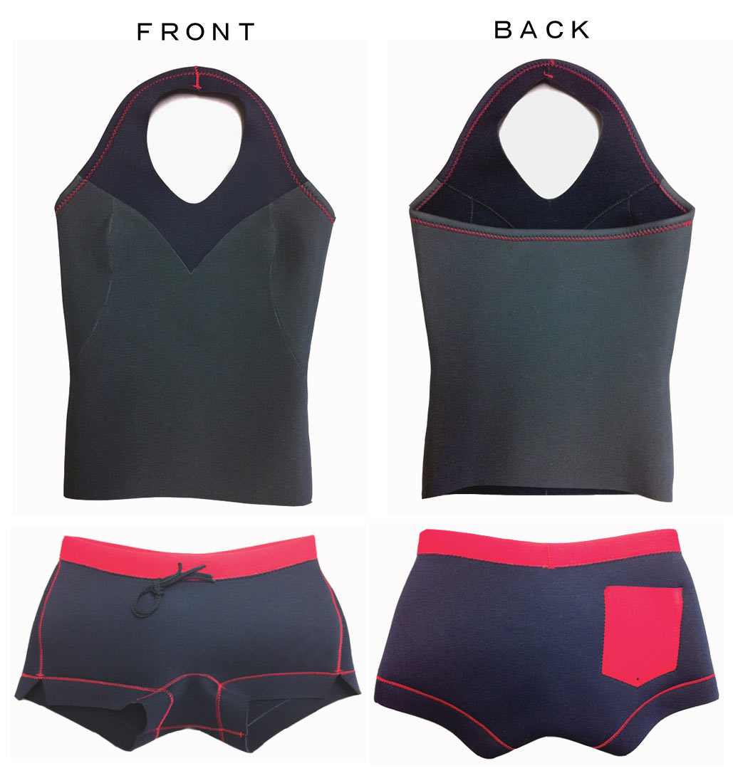 サーフ女子にAXXE CLASSICさんからかわいいホルターネックのベストとパンツが登場です。