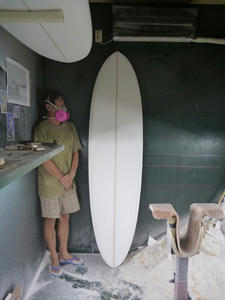 プレーナーの音が止み、静かになったのでシェイプルームを覗いてみると…