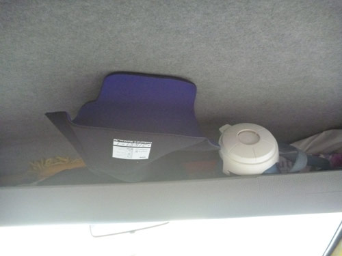 使って乾かした後は車の後ろに放り込まずに、天井に貼ってあるフエルトみたいなのにベルクロでベタッとくっつけてます。天井じゃなくてもベルクロでくっつくところならどこでもいいんじゃないですか。