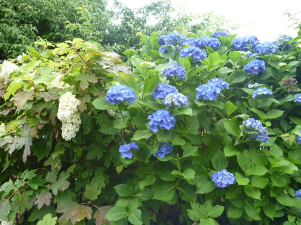セイヨウアジサイとカシワバアジサイが並んできれいに咲いています。アジサイは今が見ごろですね。近所のホタルも飛び始めました。梅雨のむこうの夏が見え隠れしているようです。