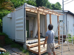 外溝に取り掛かっています。作っているのは入り口前のポーチ。おじさんたちの溜まり場になることでしょう。