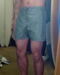 こんな感じ。さすがにこのトランクス一丁でモデル立ちする度胸はございませんが短いバードウェル、いい丈の長さでしょ。