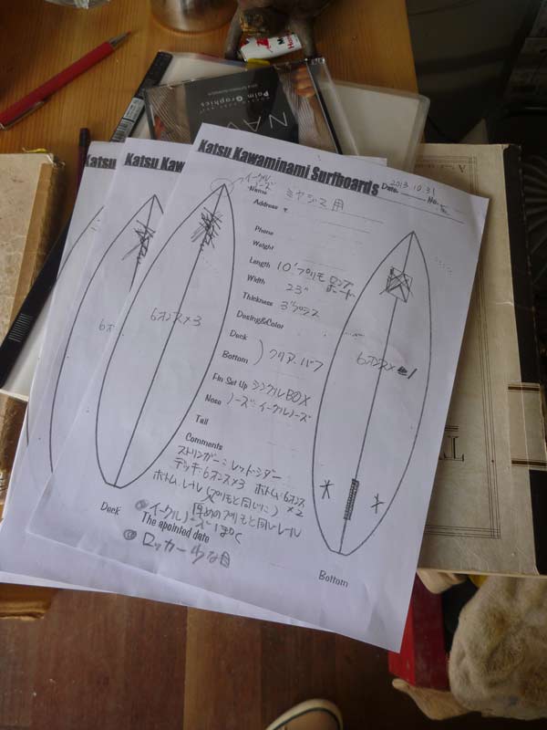 そして、お店用にシェイプしていただくロングボードの打ち合わせ。ロッカーはノーズライダーに適したものをチョイス。フォームの発泡密度、ストリンガーから注文で作ります。まずはフォームから作るので少し時間がかかると思いますが、カッコイイの作りますのでご期待ください。