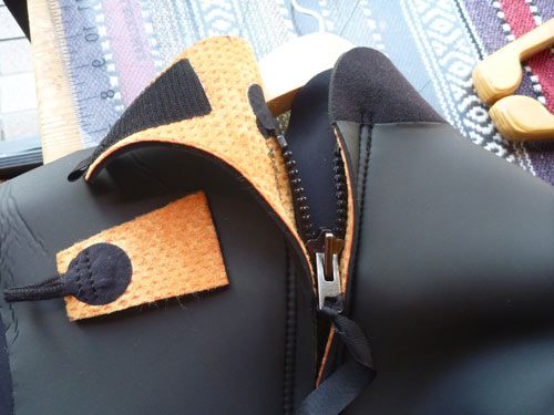 首のオスのベルクロが裏地にくっついちゃうので、ハギレでもなんでもいいから付けといてとお願いしたら、取っ手付きのこんなのが付いてきました。