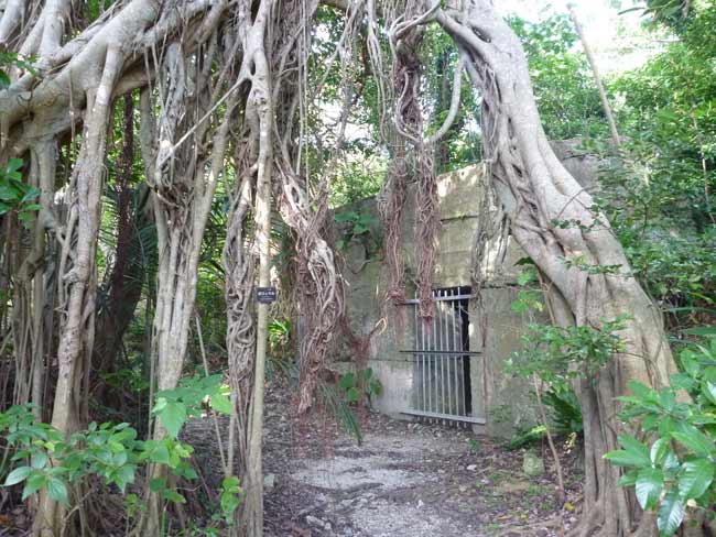 首里城には琉球王朝の歴史とは別に、かつて日本が間違えてたどった道筋の歴史も残されています。陸軍第32軍総司令部の跡です。これを撮影している私の後ろには通信壕の入り口もありました。