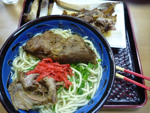これも豪快。巨大なソーキが皿に乗って出てきたのをむしって乗せて食ってます。
