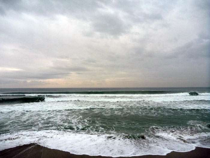 次から次へとやってくるスープをくぐりぬけて、少し沖に出たと思ったらワイドなセットが立て続けに入ってきて、また元の位置へ戻されます。