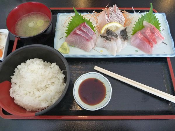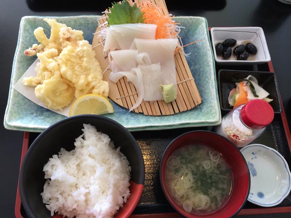 波乗りじゃない冬の海もいいものです。天気がいいのでドライブがてら、先週お世話になった駐車場の食堂で昼ごはんです。地魚の刺身定食とイカ一杯定食、どちらも千円ぽっきりです。