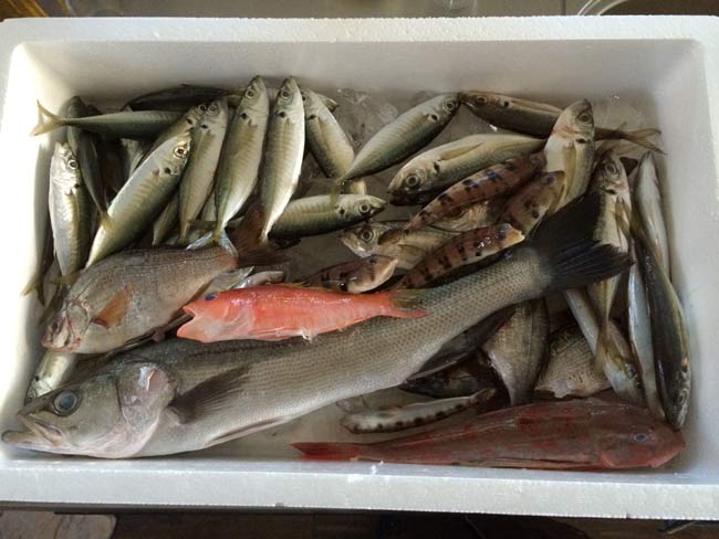 佐島でスズキ+雑魚の詰め合わせセットを買ってみました。一箱1.000円也。