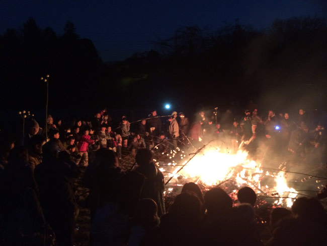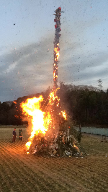 海を満喫したあとは、里山です。地元に戻って新年恒例のどんど焼きです。