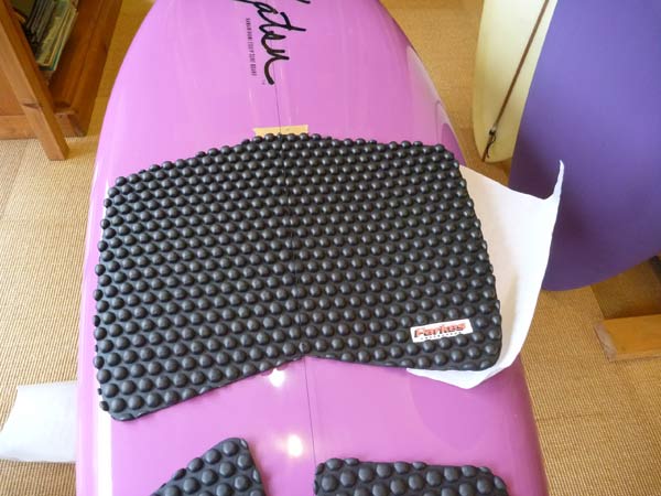 パッドはあらかじめ切って幅を調節します。このニーボードは幅が23インチありますが、オーストラリアの二ボードはもっと幅が広いんですね。(パッドはオーストラリアのパークスのものを使っています)