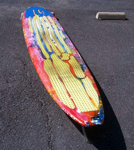 ハービーのボードはご存知のとおりかなり癖が強いボードで、しばらくはどう乗っていいやらでワイプアウト、失速の繰り返し。でも少し使っているとボードが要求してくることがだんだん解ってきます。一時間半ほど使っただけですが、ハービー・フレッチャーのスタイルと強いロッカー、大きなノーズに細いテール、小さめのシングルフィン、このボードのデザインの意味が少ーしだけ解ったような気がしました。持ち主のSさんこのボードかなり面白いです。もう少し貸しといてくださ~い。そのうちメルマガにしてみたいと思います。レールを使ったドライブ、ノーズでのコントロール性能、結構はまりそうなボードです。