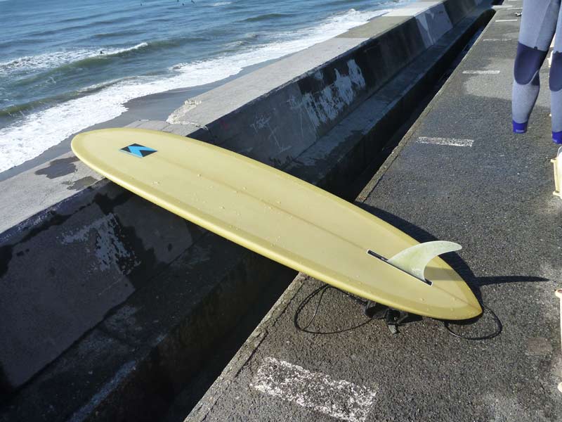 昨日吹いた風が沖でまだ少し残っているようだったので、コシくらいの波で新しいロングボードを試せるかと海へ行ってきました。
