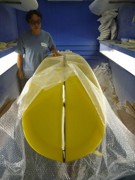 EさんのB52が出来上がりました。クラシックなノーズライダーのシェイプです。しかしいつもながらラミネートのクオリティは素晴らしいです。今日はグラッシングファクトリーの方ともお話できて勉強になりました。