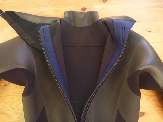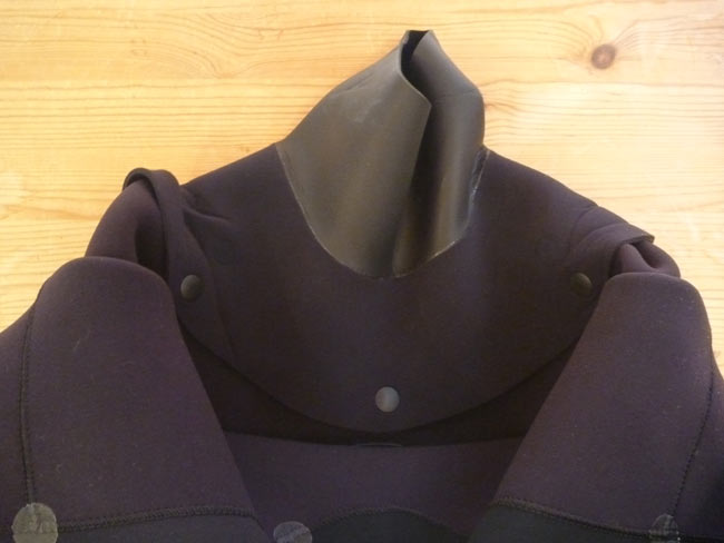 バックジップはジッパーという大きな開口部と、ネック部分の後ろに合わせ目が出来てしまうため、ネックインやジッパーレスに比べて、浸水が多くなってしまうという問題がありました。