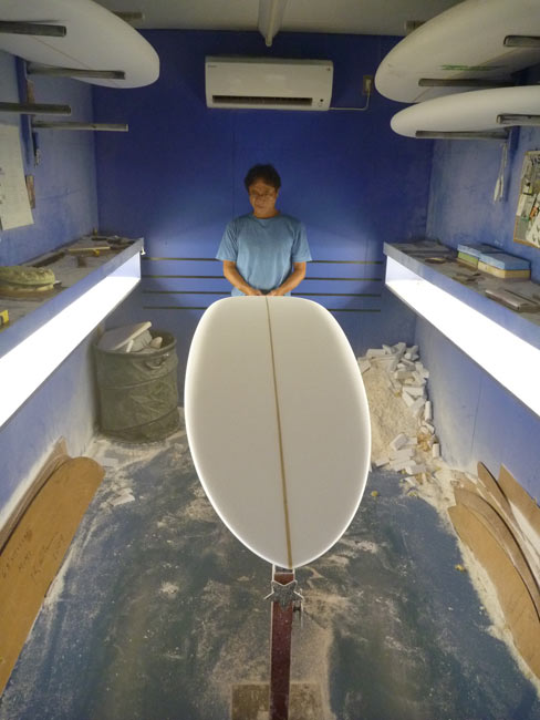 ショップのオープンは2001年。それ以来、ロングボードをベースに、フィッシュ、ボンザー、シングルフィン、ニーボード、パイポとさまざまな種類のサーフボードを作り、試してきました。