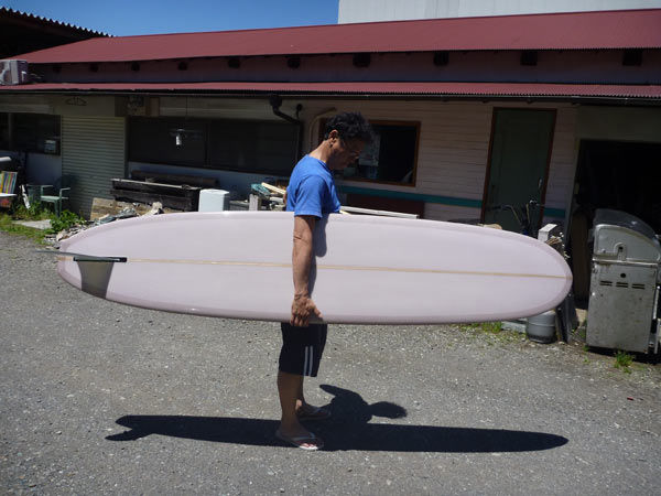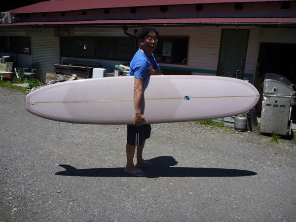 そして三本目。これも8.4。幅はかなり細いです。ヴィンテージでカツさんが所有している、ロングボードをイメージしてシェイプしました。