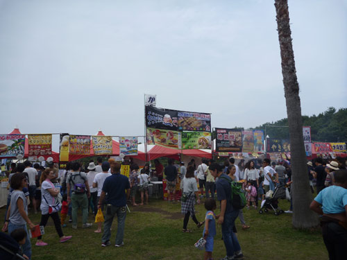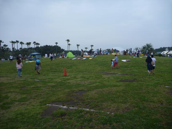 フィッシュ・フライはその奥の芝生の広場で開催。ぱらぱらとサーフボードが見えています。