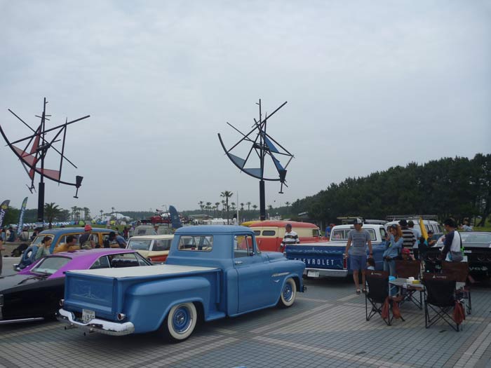 辻堂海浜公園。ヴィンテージカーがお出迎えです。