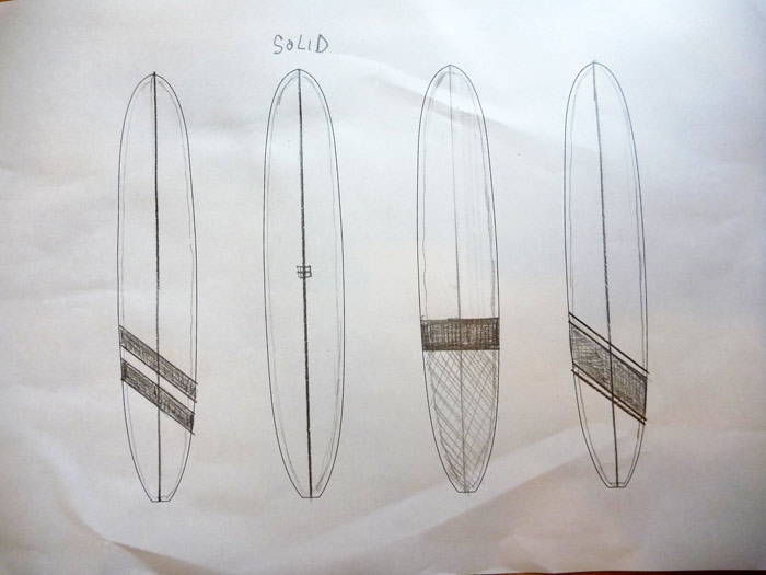 新しいロングボードを考えております。サイズは結局三回ほど考え直し、最終的には今乗っている赤いログを少しだけ細身にしたアウトラインにしてもらおうと思っています。こちらはもうカツさんにおまかせで、あとはデザイン。色柄(いろがら)です。