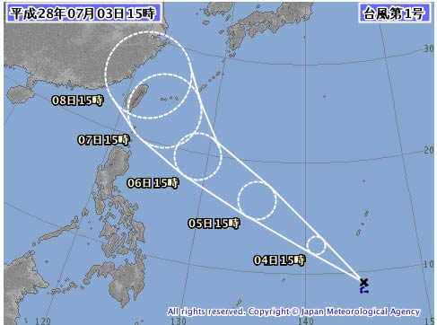 台風1号です。木曜か金曜あたりにはうねりが届くかも。