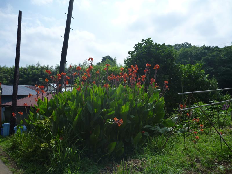 いつだか紹介した、納屋の前のカンナはもうこんなになってます。納屋が見えない。