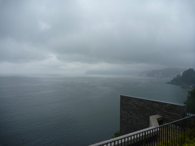 着いた日はあいにくの天気。でもこれはこれで好きな雨の海。グレイの海と空でぼやける水平線をながめていると気持ちが落ち着きます。