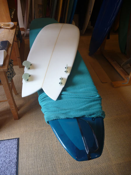 ショップのオープンは2001年。それ以来、ロングボードをベースに、フィッシュ、ボンザー、シングルフィン、ニーボード、パイポとさまざまな種類のサーフボードを作り、試してきました。