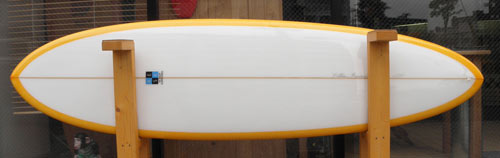 気に入っている、8.4のプリモ。感触はミッドレングスの中ではロングボードに近いものがありますが、9.6のログと比べればやっぱりミッドレングス。カテゴリー的には結構、あいまいなミッドレングスですが、6フィート代後半から、8フィートちょっとくらいまで、ということでいいんじゃいないかと思います。