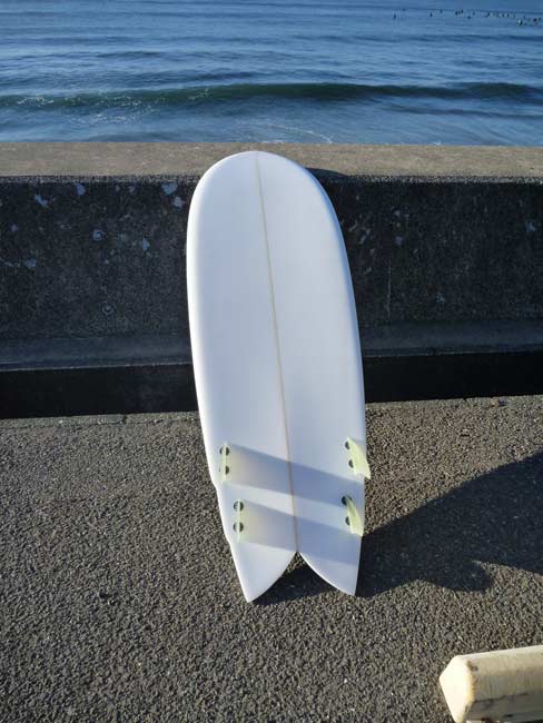 9’6”のログと6’0のクアッドフィッシュ、違いはあってもどちらもグライドしているときの感触が気持ちいいのです。