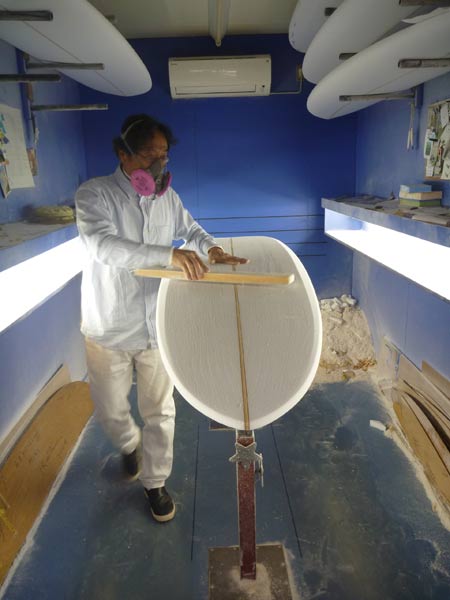ショップのオープンは2001年。それ以来、ロングボードをベースに、フィッシュ、ボンザー、シングルフィン、ニーボード、パイポとさまざまな種類のサーフボードを作り、試してきました。