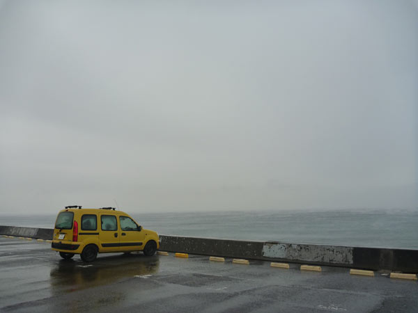 朝、海へ到着しましたが、少々早すぎた模様。昨日のお話しです。雨に冷たい北風。海面からは湯気が立ち昇っています。