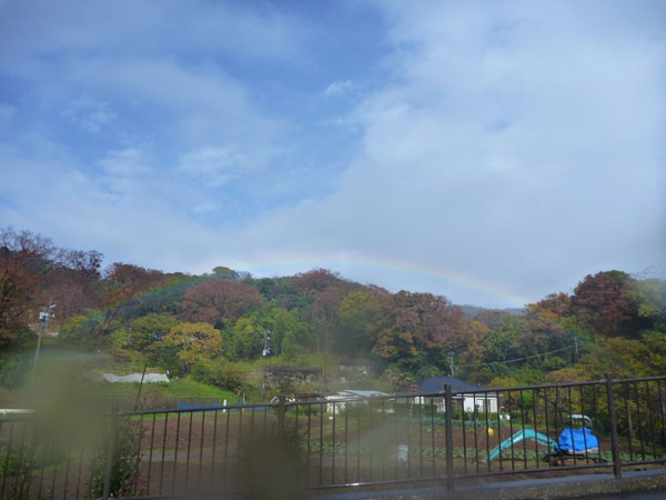 潮も引きに入っているので、急いで引き返そうとしていると、晴れ間に降る雨できれいな虹が出来ていました。コリャーいいかも、とテンション急激アップです 笑。