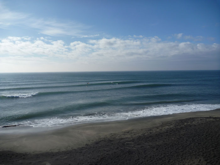 うねりはあるのでしばらく様子を見ていましたが、潮が多すぎで崩れません。昼にはオンショアが吹きそうなので早めに出てみましたが、ちょっと早すぎでした。オンショアとうねりと潮の時間と、タイミング的に今日はダメかなあと、テンション下がり気味。