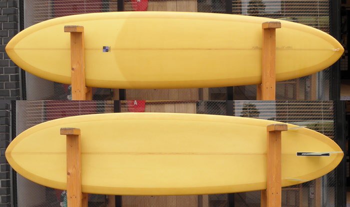 画像は最近注目度が急に高くなってきた、TIKIというモデルです。上のボードは、9フィートジャストですが、ロングだけではなく6.8の長さから作っています。ニューモデルというわけではありません。ずーっと以前からあったモデルです。