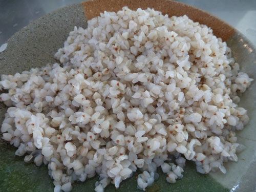 美味しくてすっかり気に入ってしまった徳島の「そば米」、今日の昼食に料理してみました。米という名前がついてはいますが、お米ではありません。蕎麦の実をゆでて皮をとりのぞいて乾燥させたものです。