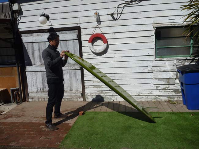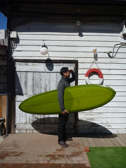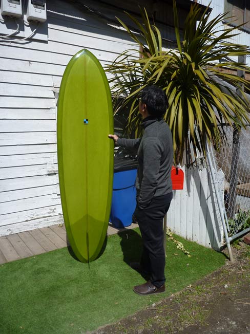 長さは6’4”、幅21”プラス、ダイアモンドテールのホットマンゴークアッド。気合い入れずに、ロングボードに乗ってるみたいにチカラを抜いてスイーッと滑ってくれるのがイメージなのです。