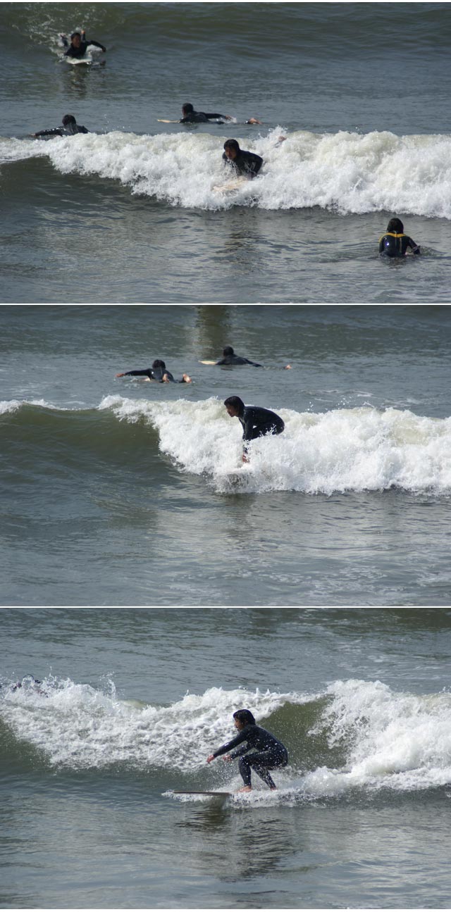 言わなくても分かるとは思いますが、むずかしいです。ちゃんと乗れた記憶は数回しかありません。長時間海に入っていて、波待ちとパドルだけで終わったことも珍しくありません。