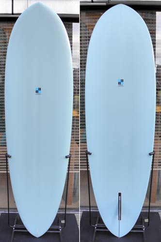 MINIはまたまたシングルフィンです。私の趣味ですいません。トライフィンやその他はオーダーでお作りします。フィンがシンプルなシングルなら、カラーもシンプルに明るいブルーのピグメント一色でかっちりと巻いていただきました。