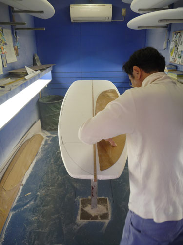 ショップのオープンは2001年。それ以来、ロングボードをベースに、フィッシュ、ボンザー、シングルフィン、ニーボード、パイポとさまざまな種類のサーフボードを作り、試してきました。