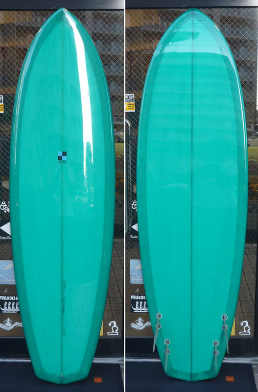 今日は先日のブログで、9’9”と一緒に写っていた6’2”のお話し。左側のターコイズグリーンのクアッドです。