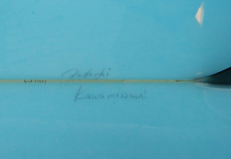 シェイプしたのは、川南正さん。日本で最初のニーボーダーです。ウェットスーツも作ります(ZERO)が、シェイプもすごいです。