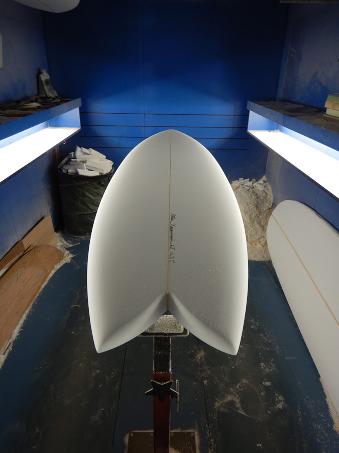 ショップのオープンは2001年。それ以来、ロングボードをベースに、フィッシュ、ボンザー、シングルフィン、ニーボード、パイポとさまざまな種類のサーフボードを作り、試してきました。