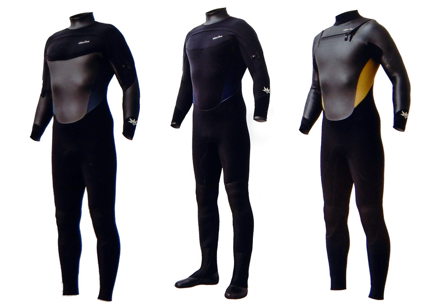 真ん中のブーツ付きはほぼドライスーツに近いものがあります。さらに暖かさを求める人はブーツ一体型をどうぞ(スーパーセミドライオプションが標準です)。