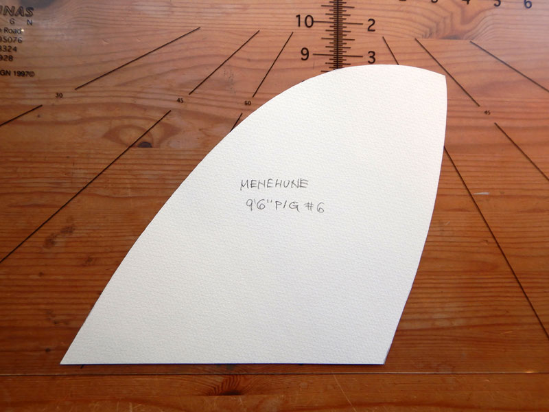ブランクスを注文したばかりで、まだ少し先になりますが、次に作ってみようと考えているログのフィンのテンプレットを作ってみました。最近作った2本、ホワイトピグメントの9.6とピンクの8.3のフィンは、もう少し立ち気味でピヴォット的な動きを意識しましたが、それらよりも後方へ寝ている形です。