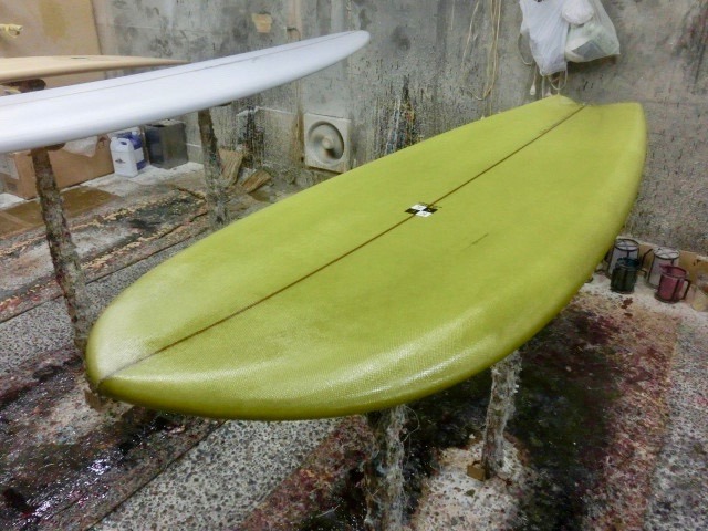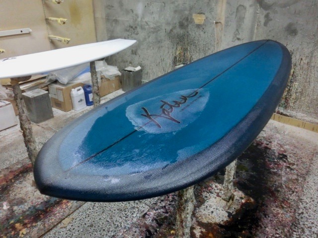もう一本はこのMINIです。活さんのラインアップに登場した一番最初のモデルです。フィンは今回もシングルです。MINIはもともとトライフィンのモデルとして作られはじめたのですが、当時からシングル好きだった私はずっとシングル。だって好きなんですもん。トライはオーダーで作ります。